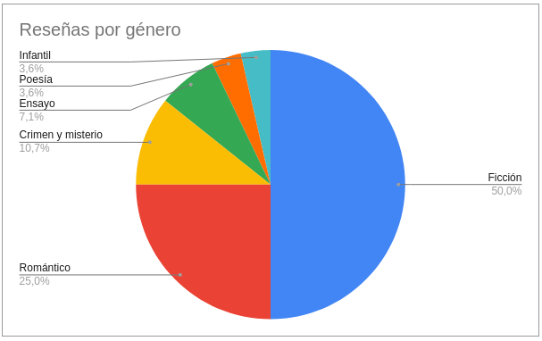 Otro mes más el género preferido por nuestros lectores ha sido el de ficción. Y tenemos una novedad: hemos añadido literatura infantil gracias a la aportación de @palabrasdeidayvuelta, con su reseña del álbum ilustrado: Monstruo Rosa.