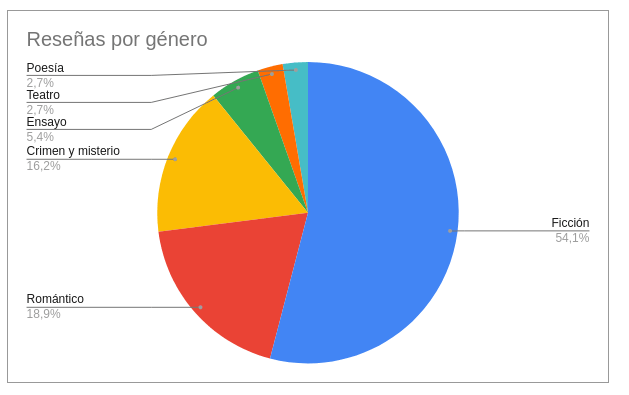 De nuevo, el género más leído es ficción contemporánea. Pero estos últimos dos meses, ha habido una subida del género de misterio y crimen (chancháán).