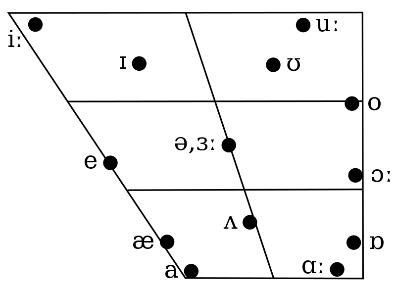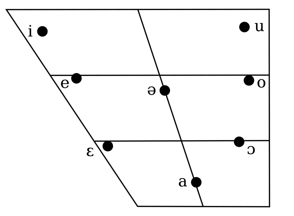 De estas tres variables, la abertura y la localización son más importantes que el redondeamiento. La [u], por ejemplo, es una vocal redondeada. Si no redonadeamos la vocal obtenemos otro sonido que suena como cuando tenemos la boca dormida después de ir al dentista. Este sonido, como veremos más adelante, se transcribe como [ɯ]. Para ubicarnos en el mundo de las vocales la gente de la Asociación Fonética Internacional crearon un diagrama con las tres variables mencionadas anteriormente.